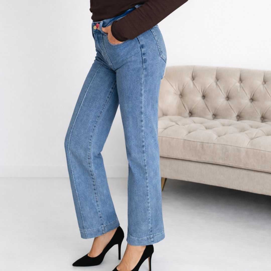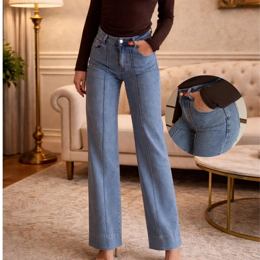 Ove ženske farmerice su savršen spoj udobnosti i modernog dizajna. Visoki struk lepo oblikuje figuru i pruža dodatnu podršku u predelu stomaka, dok ravne i blago šire nogavice daju elegantan i izdužen izgled nogama.